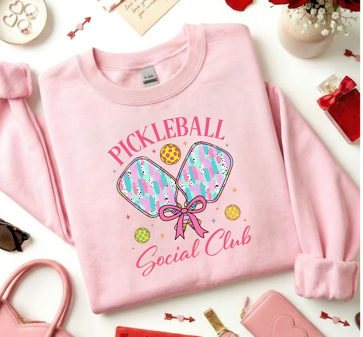 Pickleball warmup clothes, soft cozy sweatshirt with a pickleball theme, choose white, black, sand, green or pink
